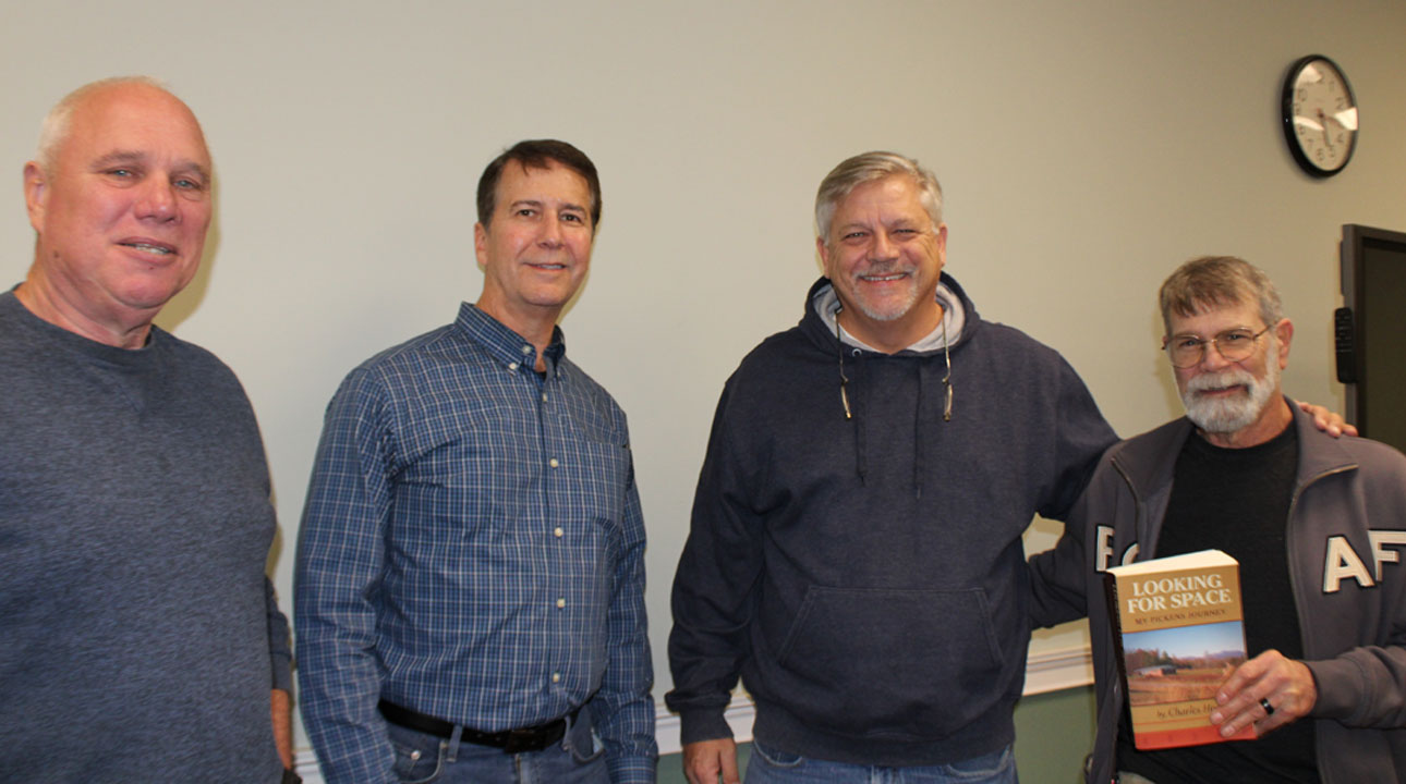 Author Charles Hood returned to the Pickens Village Library on Wednesday, December 3, 2025 to speak and read selections from his book Looking for Space: My Pickens Journey, his memoir about growing up in Pickens in the 1970’s. He also took questions from the audience and signed copies of his book. Since the book was released four months ago, 1,000 copies have been sold, raising $5,000 for the Young Appalachian Musicians (YAM) camp scholarship in memory of his late son, Ryan.