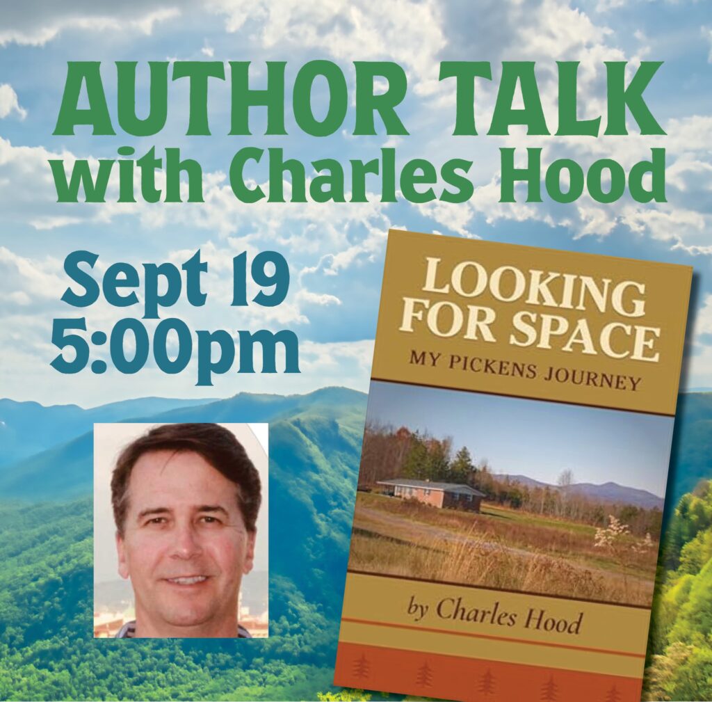 Meet Charles Hood, author of Looking for Space: My Pickens Journey, during an Author Talk at the Village Library in Pickens on Friday, September 19, 2025. The event begins at 5 p.m.