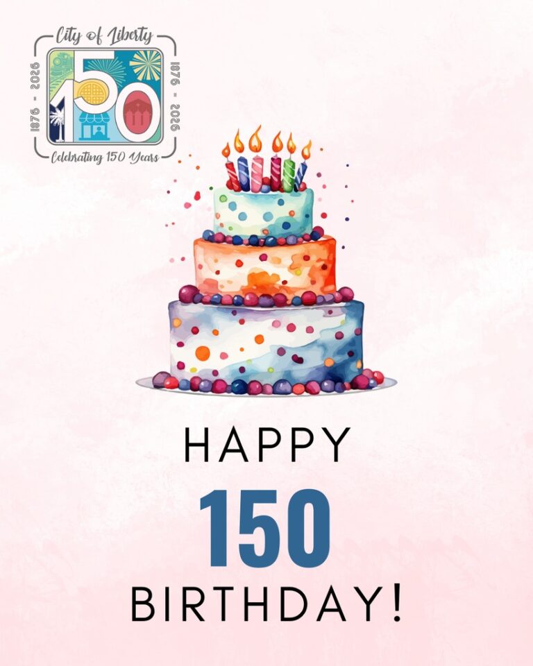 The City of Liberty, established in 1876, will celebrate with a 150th birthday party from 2 p.m. to 5 p.m. on Saturday, March 7 at the Rosewood Center.