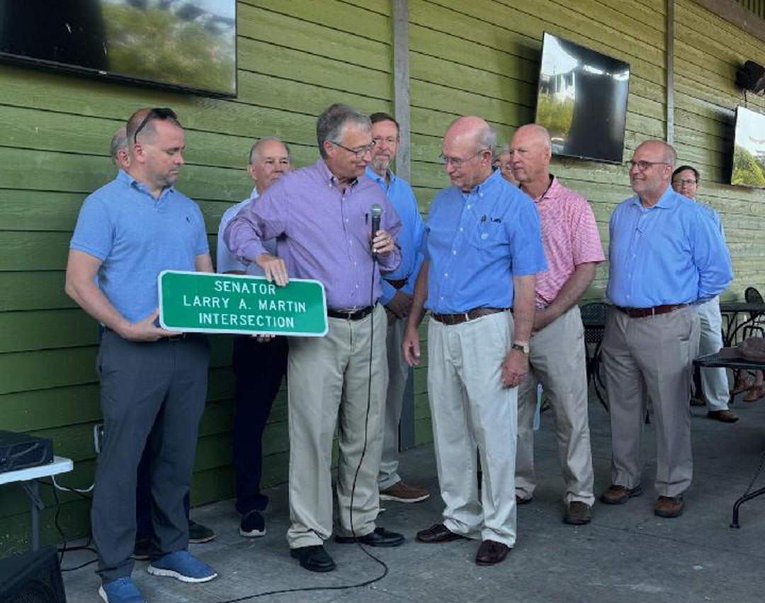 The intersection of State Highway 153 and U.S. Highway 123 will be known as the Senator Larry A. Martin intersection, recognizing Martin’s work in seeing Highway 153 extended, as well as his many accomplishments during his 38 years in the General Assembly, beginning in 1979. A resolution to name the intersection in his honor was passed by the South Carolina General Assembly, and a special presentation was made the morning of Saturday, June 7, 2025.