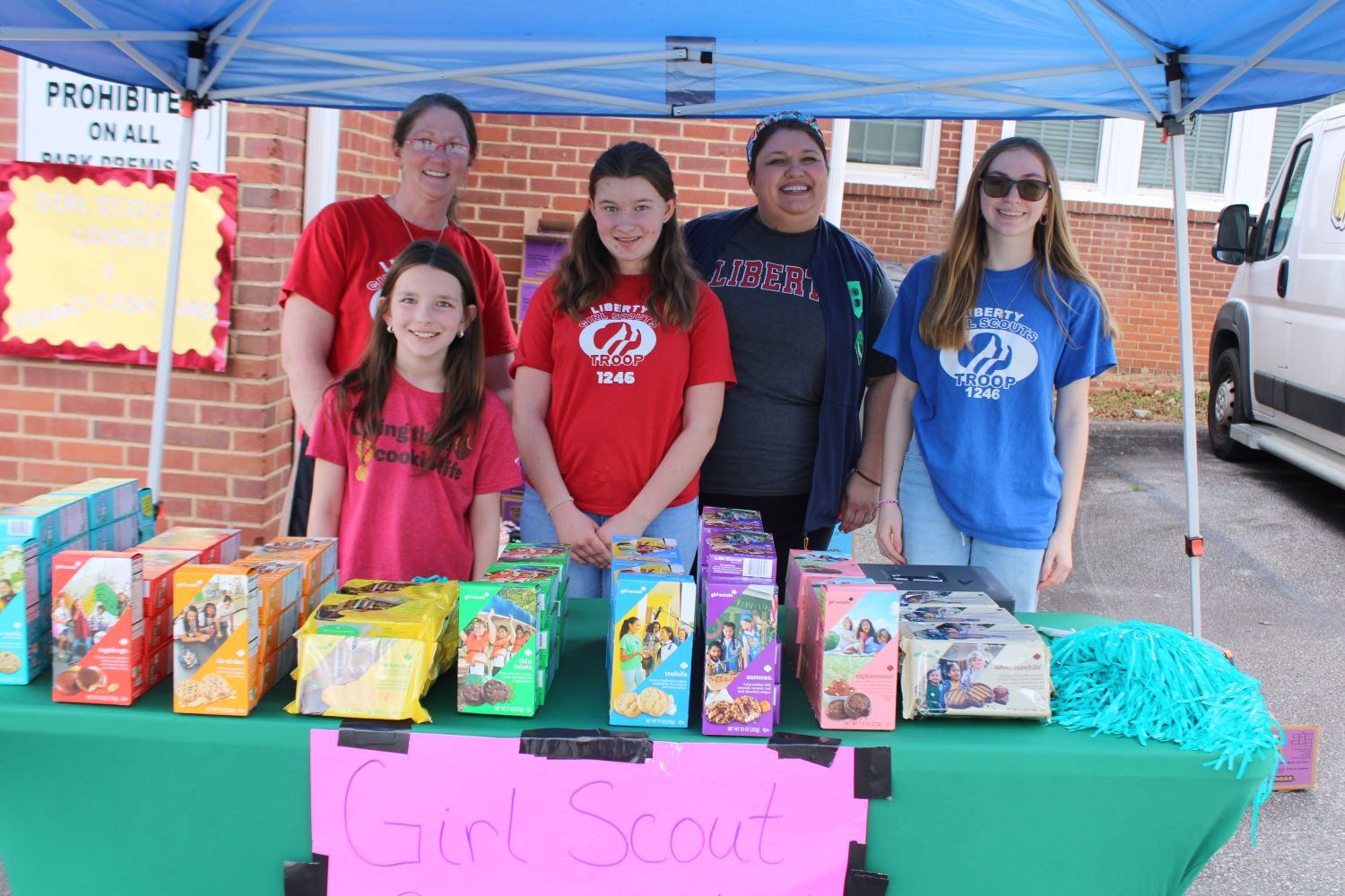 Liberty's Troop 1246 Girl Scouts sold Girl Scout cookies outside the Rosewood Center the afternoon of Saturday, March 7, 2026 during the City of Liberty's 150th birthday celebration. (Photo by Karen Brewer, The Pickens County Chronicle)