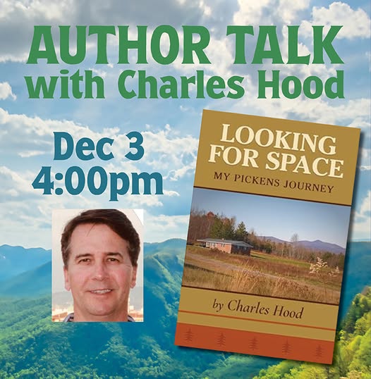Meet local author Charles Hood at the Pickens Village Library on Wednesday, December 2, 2025 at 4 p.m. His book Looking for Space: My Pickens Journey shares a moving story of overcoming adversity, drawn from his experience growing up in Pickens, and reflects on how a welcoming community helped him find his place. Charles will discuss his writing journey, the inspiration behind his work, and what it takes to bring a book from idea to publication.