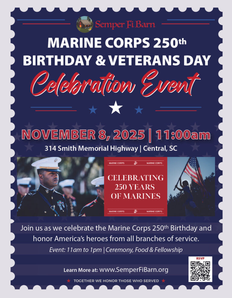 The Semper Fi Barn will honor veterans from all branches of service and celebrate the Marine Corps 250th Birthday at a combined event on November 8, 2025 from 11 a.m. to 1 p.m.